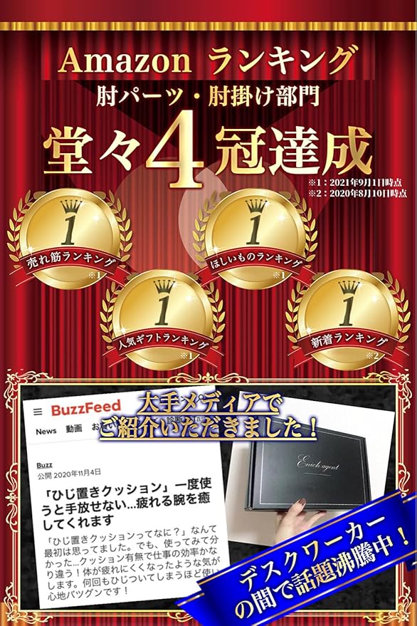 ✅【高品質な高密度ウレタンを採用】 Enich agentのひじ置きクッションは他メーカーで販売されているものと比べて高品質な高密度ウレタンを採用しています。品質の高さは日本国内で実施した品質試験の結果でも証明されています。見かけは同じでも耐久性、使い心地がまったく違うEnich agentのひじ置きクッションをぜひ体感してみてください。