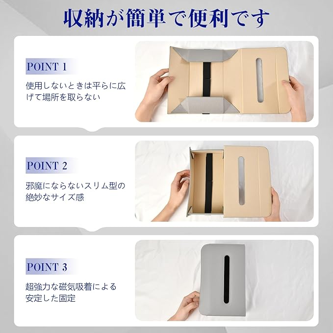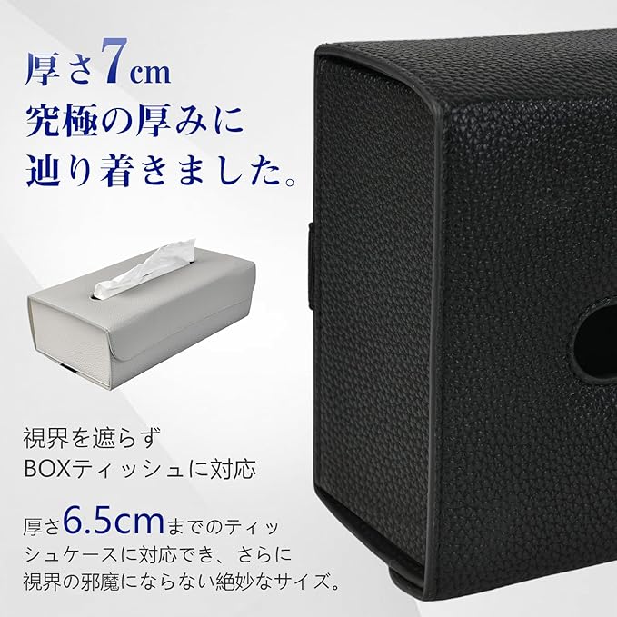 【全ティッシュ入り可能】25 13 7cmの超大容量設計(市販ティッシュ90%対応)。滑り止め加工内側とスムーズな取り出し口で、走行中の振動でもティッシュがずれず、最後までスムーズに取り出せます。
