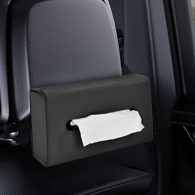 【車載専用設計】車用ティッシュケース、ヘッドレスト/手すり/ダッシュボード/サンバイザーに取り付けることができ、取り付けがしっかりしていて外れない。