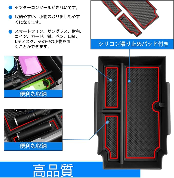 【滑り止め設計】:滑り止めと衝撃吸収特性を備えたゴム製パッドは、運転中に物体が動いたり引っかいたりするのを防ぎ、騒音がありません。ゴム素材なので、ほこりや汚れがあれば、直接洗っても問題ありません。
