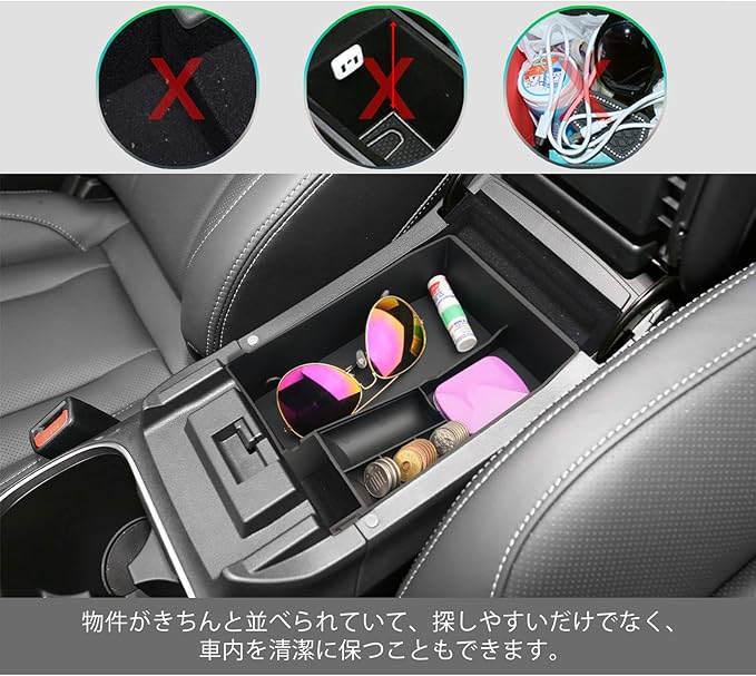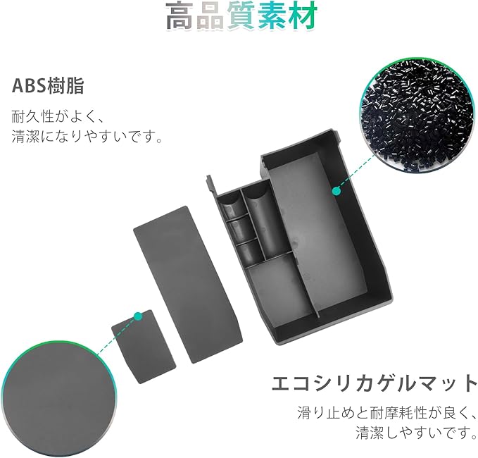 【高品質素材・耐久性】高品質のABS樹脂を素材として製作し、耐熱性に優れ、高温でも低温でも良好な性能を維持します。また耐食性に優れており、劣化を恐れず長く使用できます。良質なシリカゲルで作られた内蔵ゴムマットは、摩擦を増大させ、滑り止め性能を高め、緩衝作用を強化し、保管されている物体が走行中の変位を避けるだけでなく、騒音も減少します。