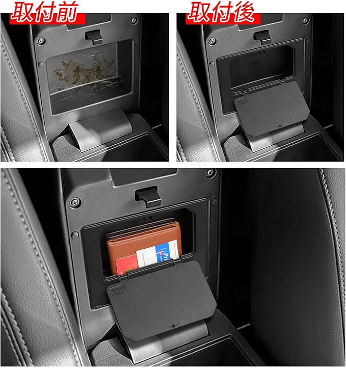 3.【隠しスペースを有効活用】:トライトン収納ボックスはアームレストの凹み部分を有効利用した隠し収納ボックスで、カードや小銭などの小物を収納しておき、必要なときにすぐに取り出せます。また、非表示の収納スペースであるため、銀行カードや現金、貴重品を安全に保管でき、車内の限られたスペースを有効活用することができます。