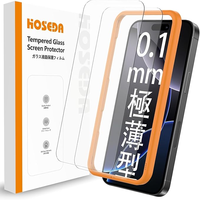 【0.1mm 極薄型】HOSEDA ガラスフィルム iPhone 16 Pro 用 強化ガラス液晶保護フィルム [軽量化/高感度タッチ/高透過率/指紋防止/ガイド枠付き](6.3インチ アイフォン16Pro 用) | KAZESHOP