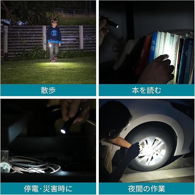【電池式懐中電灯】単四電池1本(付属)を使えて正常に使用でき、最大12時間使用可能。お手元に届き次第すぐにご利用可能。夜のペットの散歩やウォーキング、警備の見回り、夜釣り、キャンプ、登山、アウトドア、停電、非常灯など様々な場面で使用可能です。