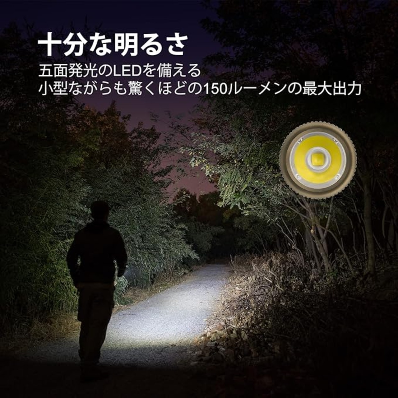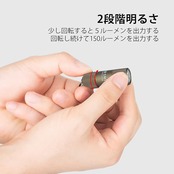 [明るさを2段階調整可能] I1R 2は2つの照光モードを備え、回すだけで簡単に調整できます。モード1:5ルーメン、ランタイム:6時間、射程:9m。モード2:150 ルーメン、ランタイム:15分間、射程:40m。ヘッドを時計回りに少し回転させると、5ルーメンになります。更に回転させると、150ルーメンになります