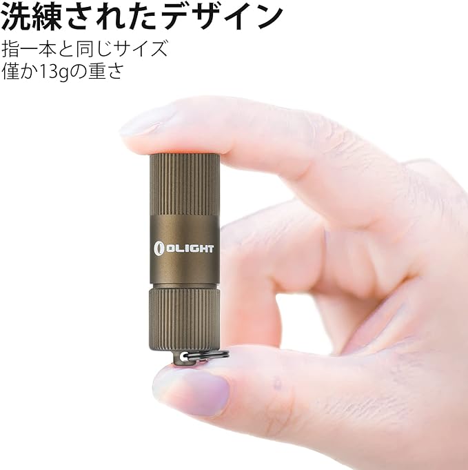 [コンパクトで持ち運び便利] I1R 2フラッシュライトの重さは13g、長さ:44mm、ヘッド径: 14.8mm、ボディー径: 14.8mm。指のようなミニサイズで、キーホルダーに付けたり、ポーチに入れたり便利に持ち歩けます