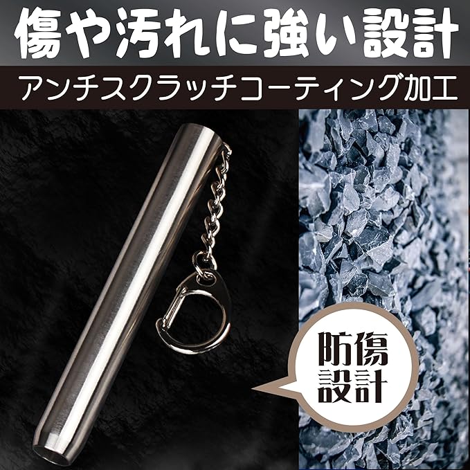 大雨の日でも問題なく使用できる:こちらのミニライトには防水Oリングが使用されておりますので、大雨の日でも問題なくお使いいただけます。また、細かな傷を防ぐアンチスクラッチコーティングも施されております。
