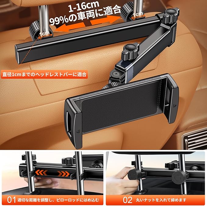 タブレット ホルダー ヘッドレスト タブレットホルダー 車 後部座席 スタンド 伸縮アーム 長さ調整 後部座席 スマホホルダー ヘッドレスト 回転可能 手帳型ケースにも対応可能 バーの適用幅範囲1cm-16cm 4.9-12.9インチ対応 iPad Pro/Air Mini用(4.9-12.9) (D6-H) | KAZESHOP