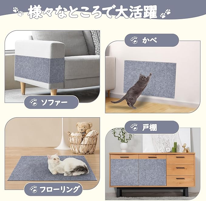 多用途なシート:当製品は猫用爪研ぎシートとして、家具や床や壁などのところに付けてそれを保護することだけではなく、猫ベッドに敷いてベッドのマットとしても使えます。床の滑り止めラグや階段マットにも様々なシーンで使用できます。