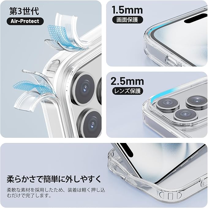 【極めて透明・薄く、耐衝撃性】WHTMM iPhone 17 Pro 用 ケース クリア TPU+PC 透明 MagSafe対応 耐衝撃 滑り止め 指紋防止 米軍MIL規格 黄変防止 スマホケースiPhone 17 Pro 対応 | KAZESHOP
