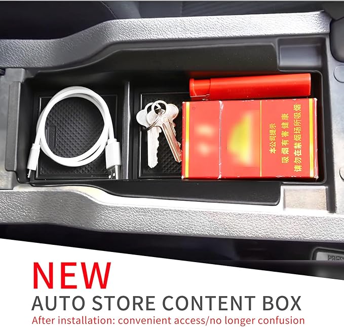 4. 【滑り止め設計】 :収納ボックスには、防水性と滑り止めのラバーマットが付けています。運転中に小物が動いた時の騒音を軽減します。