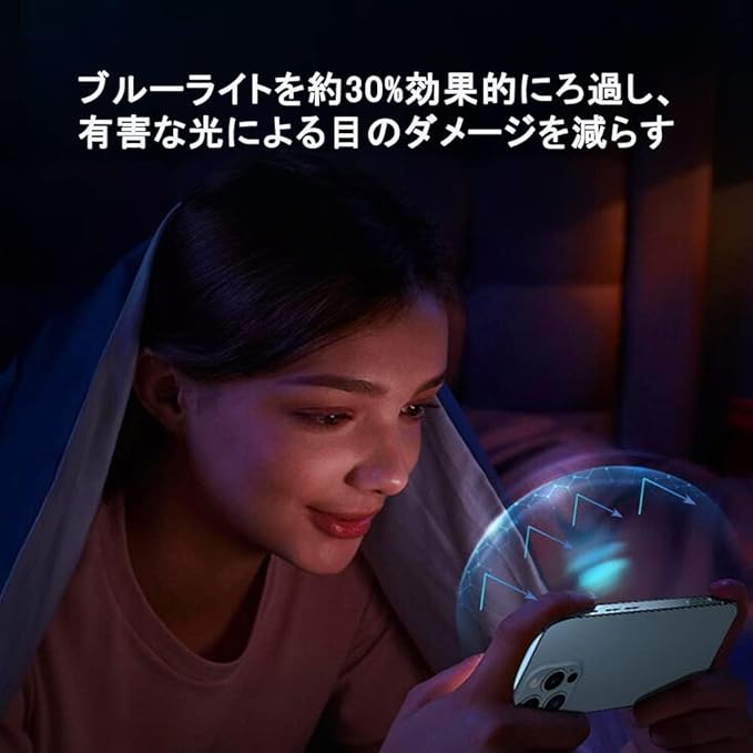 2.★★【ブルーライトカットー 目の疲れ軽減】スマートフォンの時代では、人々はより多くの時間を電話の画面を見つめて過ごします。ただし、画面が多くのブルーライトを生成し、人々の目に害を与え、近視の度合いを深め、視覚疲労を引き起こし、睡眠障害があるかもしれません。ブルーライトカット反射技術によりブルーライトを大幅にカットでき、目に掛かる負担を軽減させ、画面を長時間眺める方に効果を発揮します。
