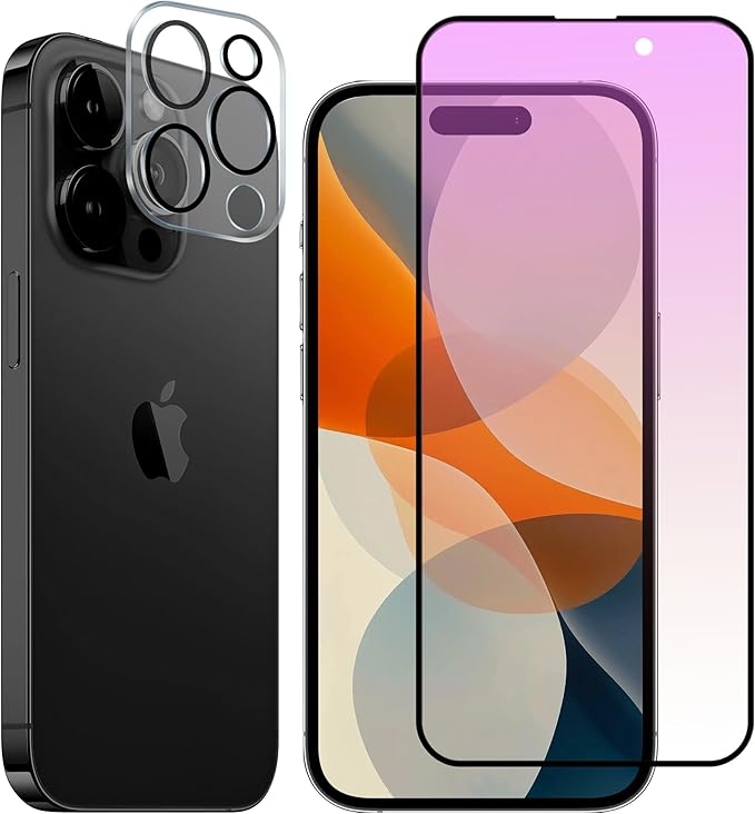 iphone 16 proガラスフィルム「ブルーライトカット」+ アイフォン 16 pro用カメラフィルム (1枚) 【旭硝子素材製】炭素繊維 3D全面保護 画面保護シート 「角割れ」防ぎ あいほん16 プロ 強化ガラス 液晶保護フィルム レンズフィルム 保護 シート 【硬度9H 浮かない 目の疲れ軽減 指紋防止 自動吸着 気泡ゼロ 超薄0.25mm】(6.3インチ) | KAZESHOP