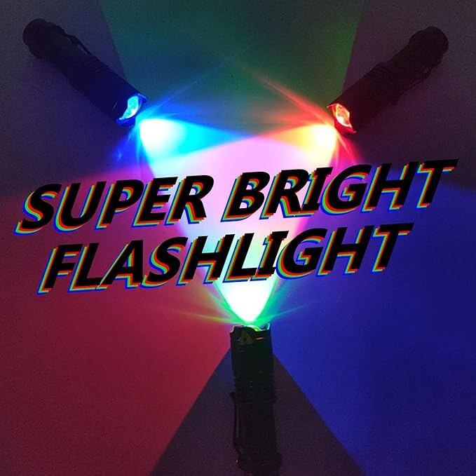 【パッケージ内容】赤い懐中電灯1個、緑の懐中電灯1個、青い懐中電灯1個、白い懐中電灯1個、(3.7 x 1.0 x 1.08インチ)。