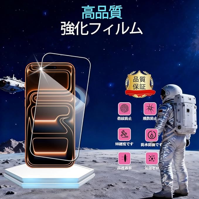 対応機種: 対応 iPhone 17 Pro 用の 強化ガラスフィルム、完璧なフィット感を実現