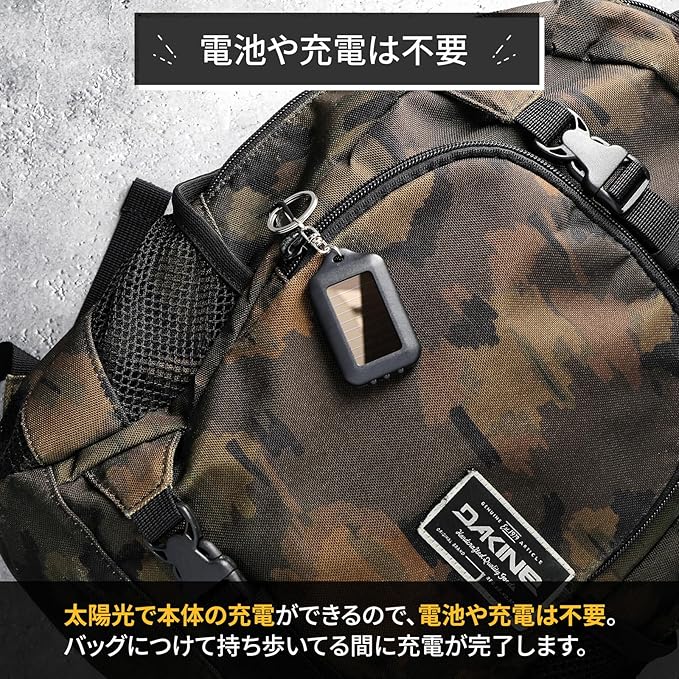 太陽や蛍光灯の光で充電するため、バックや鍵などに取り付けておけば、日中勝手に充電してくれます。