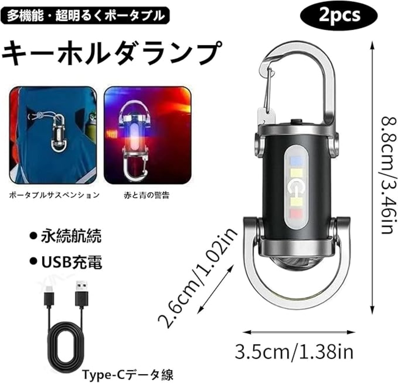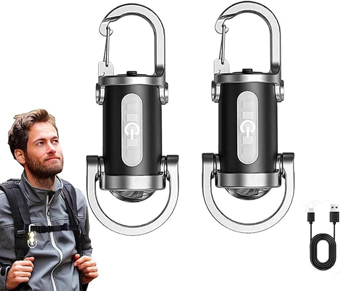 2pcs キャンプ用懐中電灯 防水キーホルダー型ライト 小型懐中電灯 多機能キーホルダー型ライト LEDキーチェーン7モード キャンプギア アウトドアアクティビティ用 USB充電式 アウトドア キャンプ 登山 釣り 緊急用 紛失予防 停電対策 (2pcs) | KAZESHOP