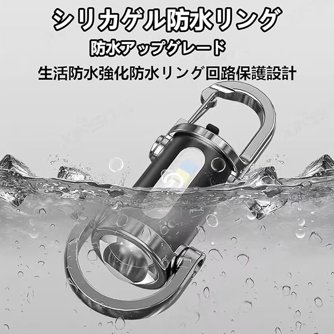 【軽量でポータブル】重さわずか70g サイズわずか8 8cm。鍵などに掛けて持ち運びも負担なく、いつでも身軽に過ごしたい方に最適です。職場やアウトドアなどに持っていくと便利です。 【簡単操作】スマート調光とハイビームモードを組み合わせたユーザーフォーカス設計で、シームレスな制御と柔軟な照明ソリューションを提供します。どんな環境やタスクにも対応可能で、幅広い用途に適しています。キーホルダーライトとして、ポケットやバッグに収納しやすく、必要な時にすぐに取り出せます。暗い場所でも簡単に操作ができ、快適な使用体験をもたらします。 【豊富な機能】このキーホルダー懐中電灯は均一な照射とクリアな視認性を実現し、夜間のハイキングや暗い環境での作業に信頼できる光源を提供します。汎用的なデザインにより、日常生活のさまざまなニーズに対応できるよう設計されています。コンパクトで持ち運びが簡単なため、旅行やアウトドアアクティビティにも最適です。暗闇での安全確保や緊急時の備えとしても役立ちます。 【充電オプションの拡張性】USB充電と幅広い互換性を持つポートを組み合わせたこのキーチェーン懐中電灯は、簡単な再充電とシンプルなバッテリー交換を実現しています。不要な複雑さを排除し、スムーズなユーザー体験を提供します。コンパクトで携帯性が高く、普段使いから緊急時まで幅広く活躍します。キーチェーン懐中電灯としての基本的な使いやすさを追求しました。 【持ち運び簡単】スナップフック付きのこのキーチェーンライトは、アウトドアでの使用に最適です。バッグやベルトに簡単に取り付けられ、さまざまな環境で長期間使用できる耐久性を備えています。軽量設計により携帯性が向上し、アウトドアアクティビティを快適にサポートします。また、頻繁な使用にも信頼性を発揮する作りになっていますので、日常使いから緊急時まで幅広く活躍します。キーチェーンライトとしての機能性を追求し、手軽に持ち歩ける点が魅力です。