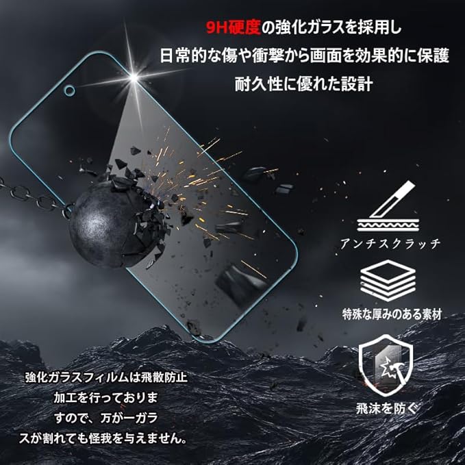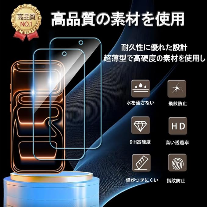 強化ガラス素材: 9H硬度の高品質強化ガラスを使用し、優れた耐久性と保護性能を実現