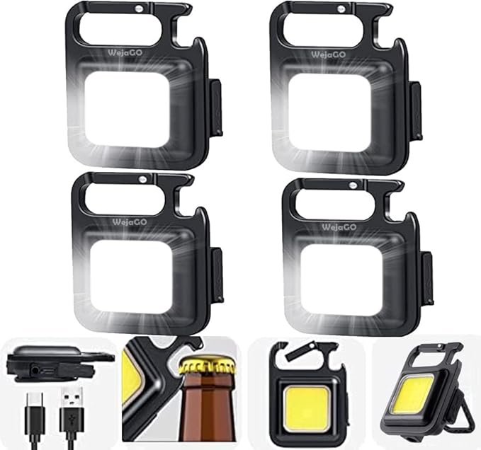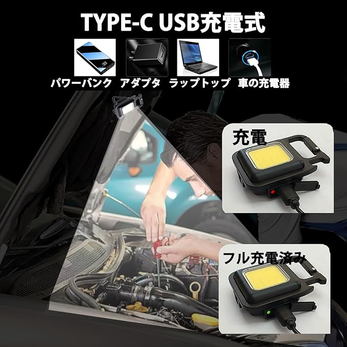 アルミ合金版 4点 使用時間2~3h LED小型懐中電灯 充電式 COB キーホルダー 懐中電灯 ライトモード4種 格納式/栓抜き/マグネッ(4点セット)