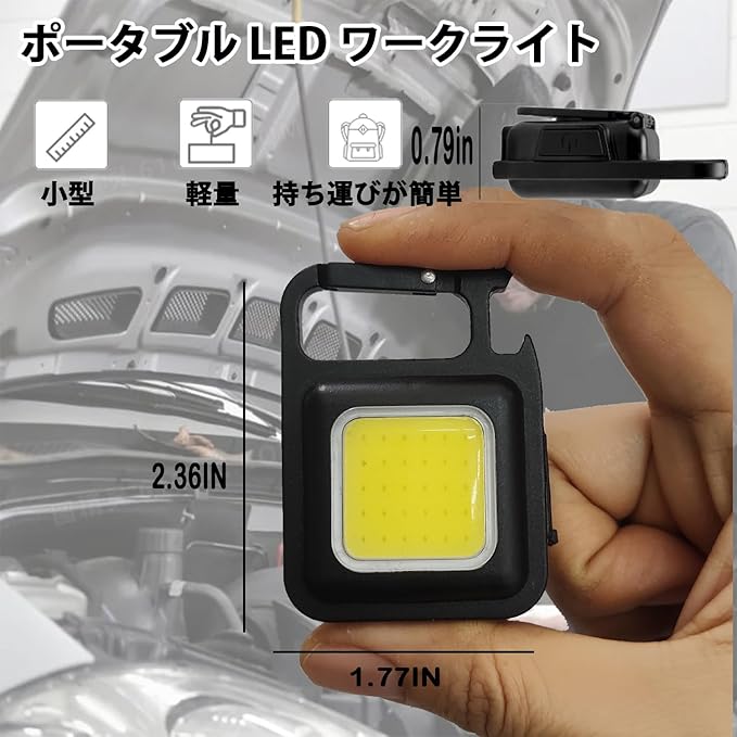 超高輝度 - 最大でルーメンの光を放つキーホルダータイプの懐中電灯。 広角の明るい発光です。 大きなCOB(チップオンボード) LEDのため、このライトを小型の作業灯や非常灯としてお使いいただけます。