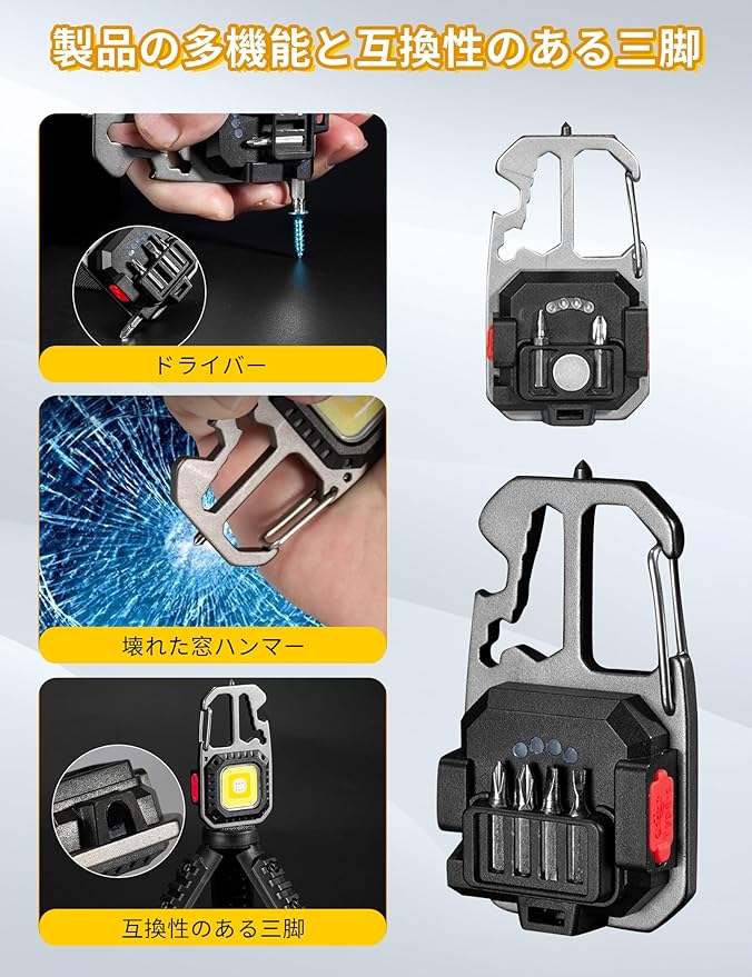 [多様性]:製品にはさまざまな機能があります。これは屋外の最初の選択肢です。たとえば:ドライバー、壊れた窓ハンマー、キーチェーン、複数の三脚に適応、スパナ、オープナー。