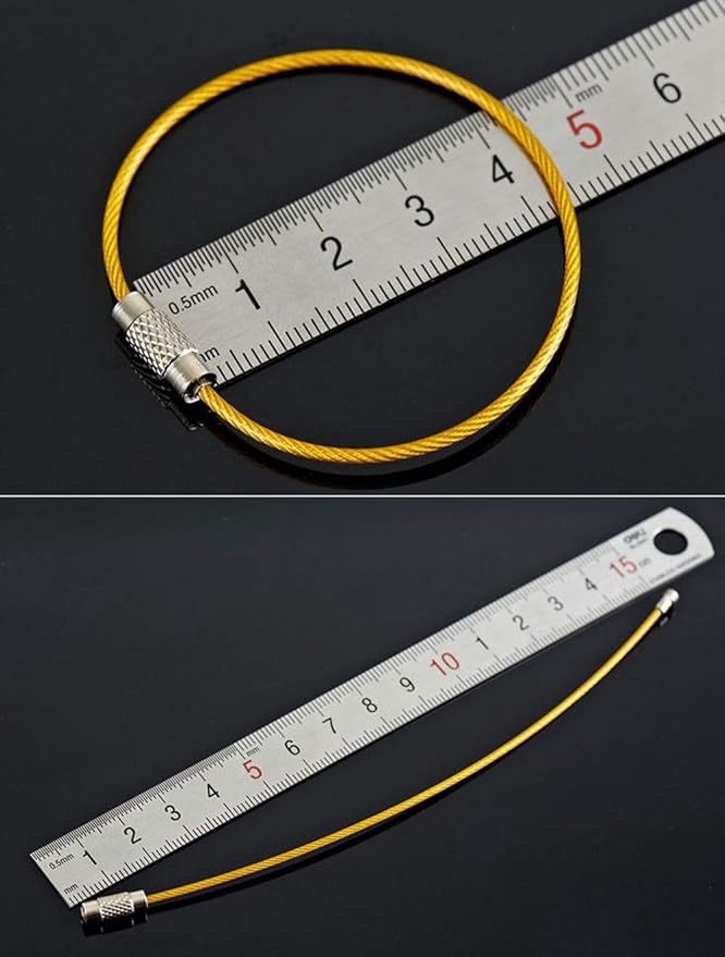 【サイズ】長さ:15cm ケーブルの外径:線約1.5mm リングにした時の直径(約):4.5cm ネジ込み式ワイヤーリング