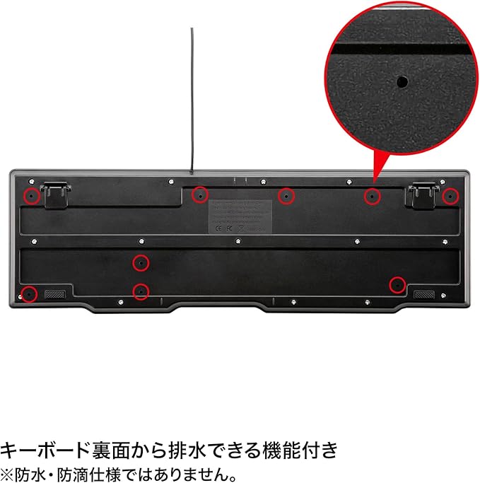 ●液体がこぼれた時にキーボード裏面から排水できる機能付きです。(防水・防滴仕様ではありません)