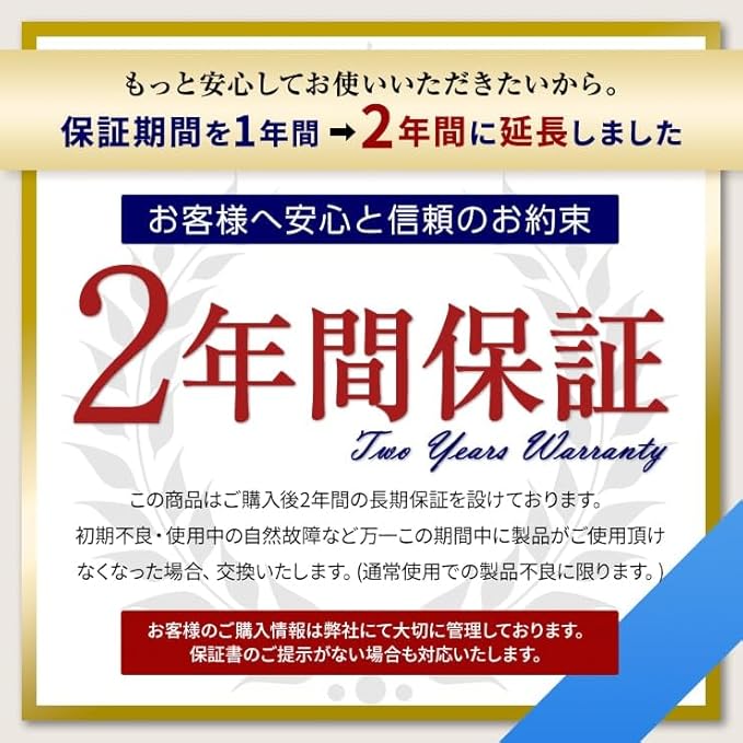 【安心の2年間保証】ご購入日から2年間の保証付き。不具合があった際には迅速にサポート対応いたします。