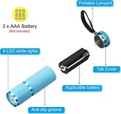 3. 小型の蓄光フラッシュライトには、省エネルギーの9つのスーパーLED電球が搭載されており、低消費電力、高輝度、良好な光集光性能を備えています。
