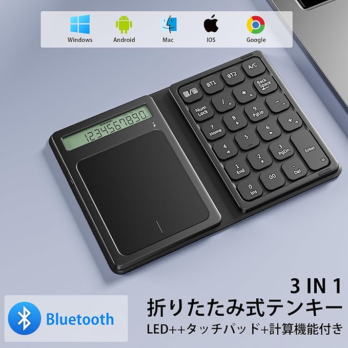 テンキー Bluetooth ワイヤレス 数字 キー電卓とタッチパッド付き パンタグラフ式 Type-C充電 超薄型 折りたたみ可能なレザーケース 構造 numlock連動 2台まで接続可能 ブルートゥース ナンバーパッド 23キー 無線 mac テンキー 片手デバイス Windows/iOS/Android/ラップトップ/PC/デスクトップ 対応 | KAZESHOP
