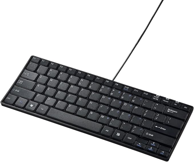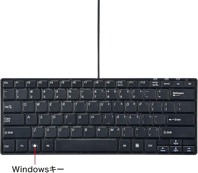 ●余分なキーを省いたシンプルな英語配列キーボードです。●ノートパソコンと同じパンタグラフキーボードです。●テンキーなしで、幅わずか293mmです。●サイズを極限まで小さくした超コンパクトデザインです。●キーボードカーブを採用しています。●使用しない時は立てて収納できます。●ケーブルは左・右・真ん中の3方向に固定できます。●2段階調節が可能なスタンド付きです。■カラー:ブラック■インターフェース:USB■コネクタ形状:USB Aコネクタ■キー数:82キー■キーピッチ:19mm■キーストローク:2.0 0.1mm■キー配列:英語■キースイッチ:パンタグラフ■動作力:50 20g■サイズ:W293 D115 H19mm■重量:260g■ケーブル長:1.5m■セット内容:本体、取扱説明書■※日本語OSで英語キーボードを使用する場合はドライバの更新を行う必要があります。※ノートパソコンや各メーカー純正キーボードのファンクションキーにあらかじめ割り付けられている特殊機能(画面の明度調整やボリュームのアップダウンなど)は、このキーボードからは操作できません。