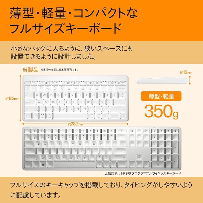 ヒューレット・パッカード(HP) HP ワイヤレスキーボード 無線 薄型 小型 HP 350 WH コンパクトマルチデバイス ホワイト 3台接続 Bluetooth Windows Mac iOS Android Chrome 日本語配列【国内正規品】 | KAZESHOP