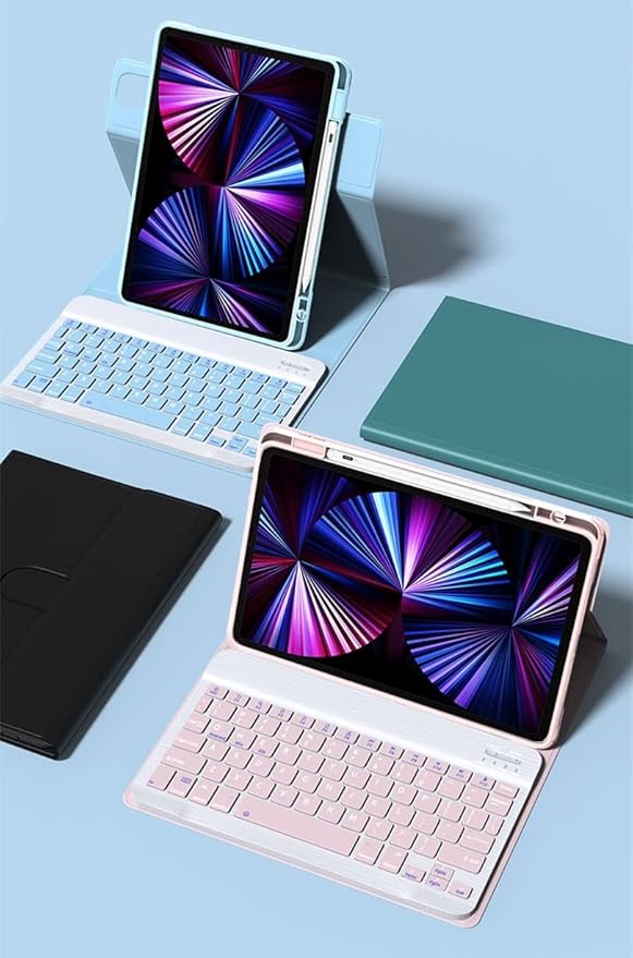360度回転 iPad キーボードケース マウス付き 縦置き対応 アイパッド キーボード カバー ワイヤレス ツートンカラー マグネット 分離式 多機能 可愛い