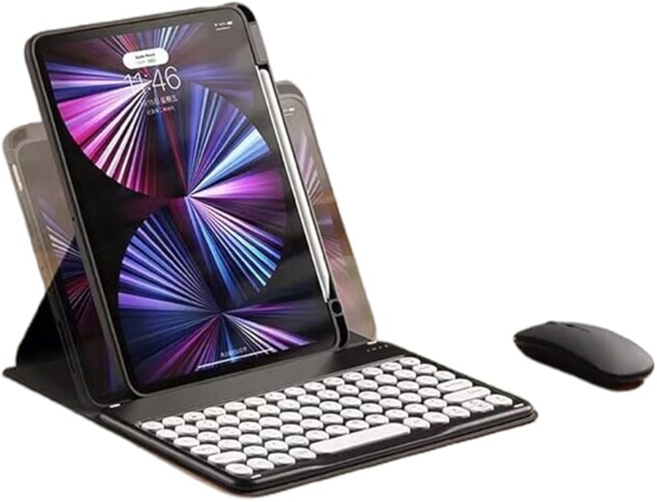 マウス付き iPad 10.2 キーボードケース 縦置き iPad 第9世代 第8世代 第7世代 カバー ペン収納 iPad9/iPad8/iPad7/Air3/Pro10.5 耐衝撃 透明 クリア 背面カバー マグネット分離式 丸型キー ワイヤレスBluetoothキーボード&マウス付き 可愛い, 黒 | KAZESHOP