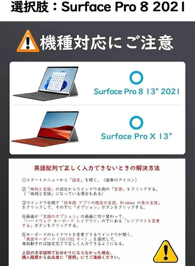 色:写真色<br> 対応機種:Microsoft Surface Pro8/ProX<br> サイズ:289*225*7mm <br> 素材:PU+ABS<br> パッケージ内容:包装*1、本体*1、USBケーブル*1<br> 企画 生産: 企画 日本 生産 中国<br><br> ■接続方式: Bluetooth(R)無線方式<br> ■インターフェイス:Bluetooth(R)5.0<br> ■USB充電式:Type-C<br> ■待機時間:100日間<br> ■充電時間:2-3H<br> ■稼働時間:30H<br> ■バッテリー容量:480mAh<br> ■通信距離:10m(使用環境により異なります。)<br> ■電池寿命:約3年<br> ■動作力(キーボード):80g<br> ■キーボード寿命:クリック500万回<br> <br>