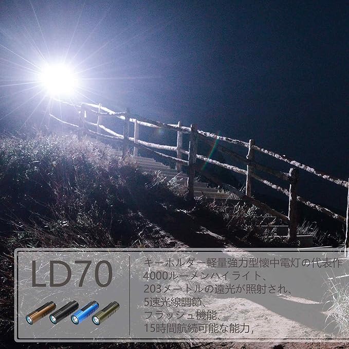 「アフターサービス保障」LD70には、日本語、英語、フランス語を含む多言語の説明書が同梱されており、ご使用の際に迅速に理解いただけるようお手伝いいたします。また、LD70は、美しいデザインの紙パック包装を採用しており、ご自身でコレクションするにしても、友人へのプレゼントするにしても、非常に適しています。また、日本国内にてプロの懐中電灯アフターサービスエンジニアと倉庫を有しており、修理、交換を含むあらゆるご要望に、いつでも対応させていただくことができます