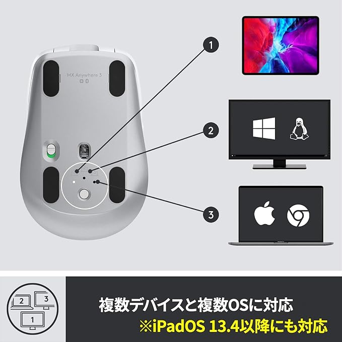 ロジクール MX ANYWHERE 3 ワイヤレス モバイルマウス MX1700PG Unifying Bluetooth 高速スクロールホイール 充電式 無線 windows mac chrome iPad OS MX1700 ペイルグレイ 国内正規品 | KAZESHOP