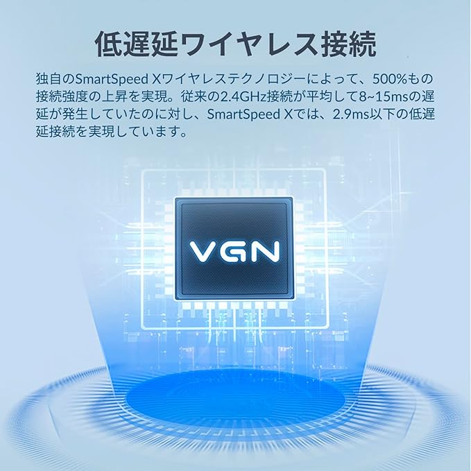 有線、2.4GHzワイヤレス、Bluetooth接続に対応しており、6000mAhの大容量バッテリーを搭載しているため、ワイヤレス接続を長期間充電することなく使用できるようになっています。