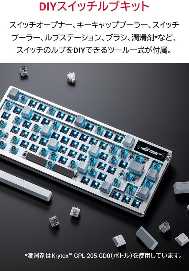 ASUS ゲーミングキーボード ROG Azoth Moonlight White 75% シリコンガスケット構造 3層消音設計 キーボード ROG NX熱交換プレルーブ軸 OLED+3WAYノブ搭載 トリプルモード(Bluetooth/2.4GHz/USB) MacOS対応 3段チルト ルブキット付属 国内正規品 | KAZESHOP