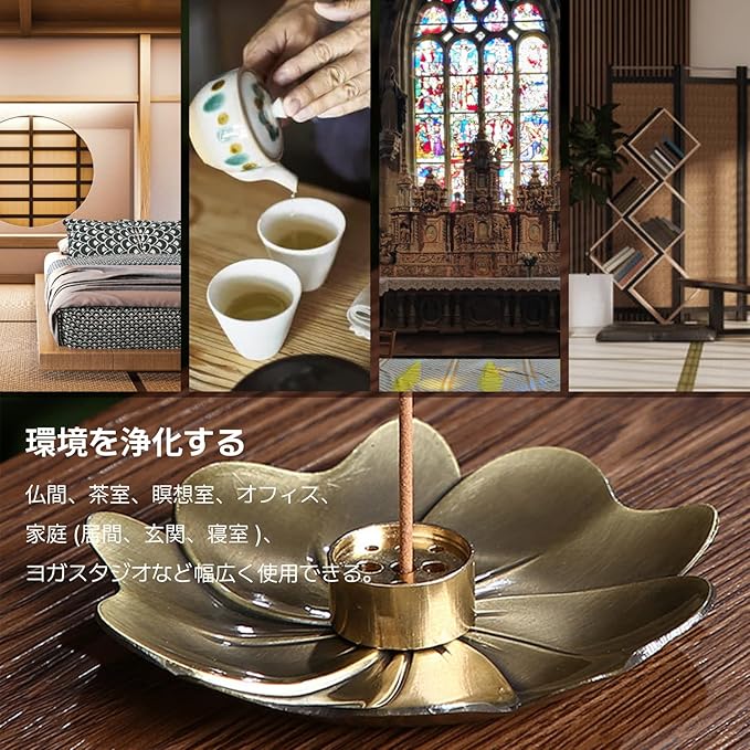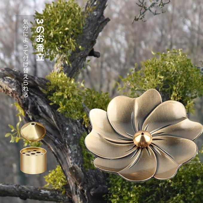 【美しいフォルム】合金と真鍮の材質を作られた桜型のお香立は水洗いが出来て手入れ楽々、耐久性が抜群で長年ご利用いただける。 職人がこだわって作成したお香台はインテリア性が高く目で見ても楽しめます。
