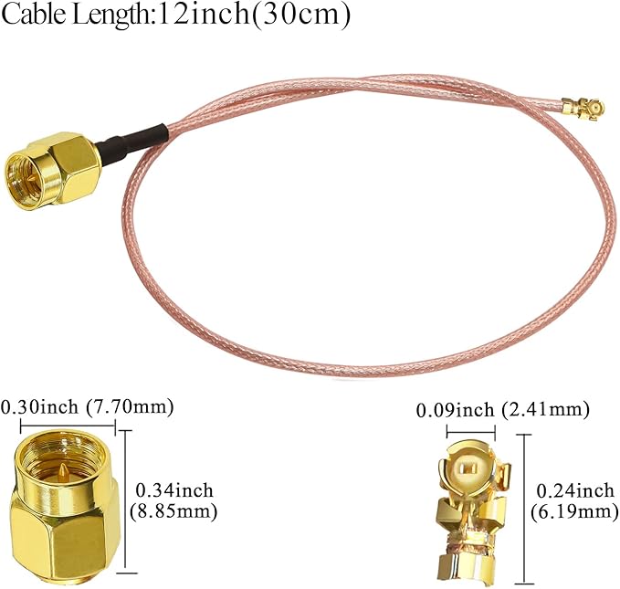 U.FL-SMA 同軸 ケーブル TUOLNK SMA オス プラグコネクタ-UFL IPX MHF1 同軸 ケーブル WiFi アンテナピグテール 延長 ケーブル(Mini PCI Express RG178用)12インチ(30cm)5パック | KAZESHOP
