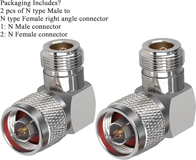 パッケージ内容: N オス - N メス エルボ コネクタ 2 個 (コネクタ 1: N オス、コネクタ 2: N メス)