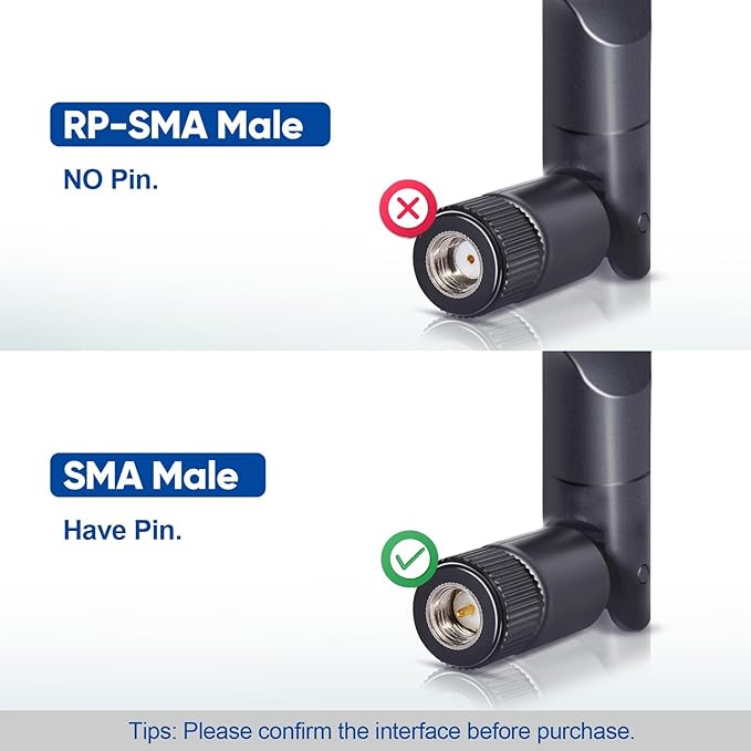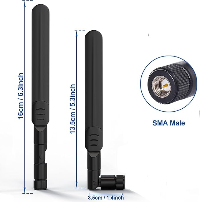デュアルバンドWiFi:2.4GHz(2400 - 2485 MHz)、5GHz/5.8GHz(5150 - 5850 MHz)、ゲイン:6dBi、指向性:全方向性、アンテナインターフェース:SMAオスインターフェース