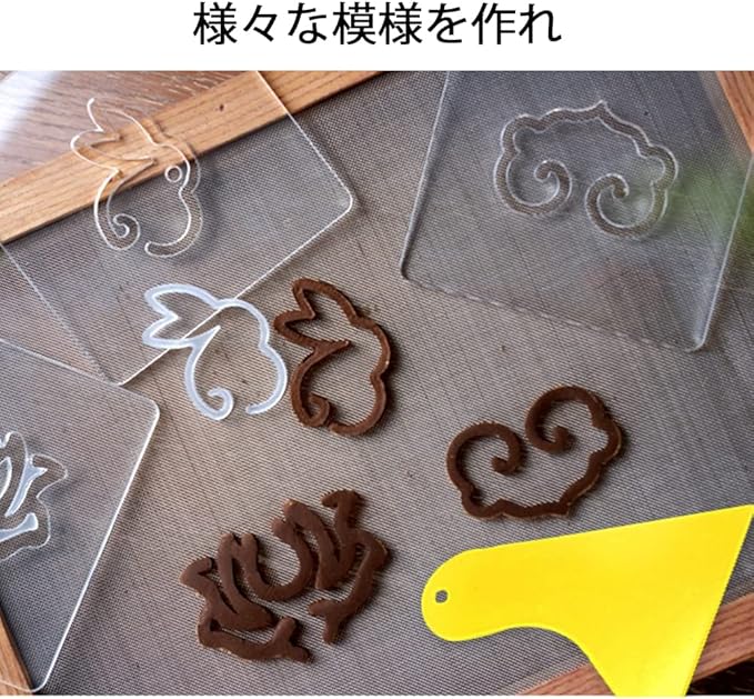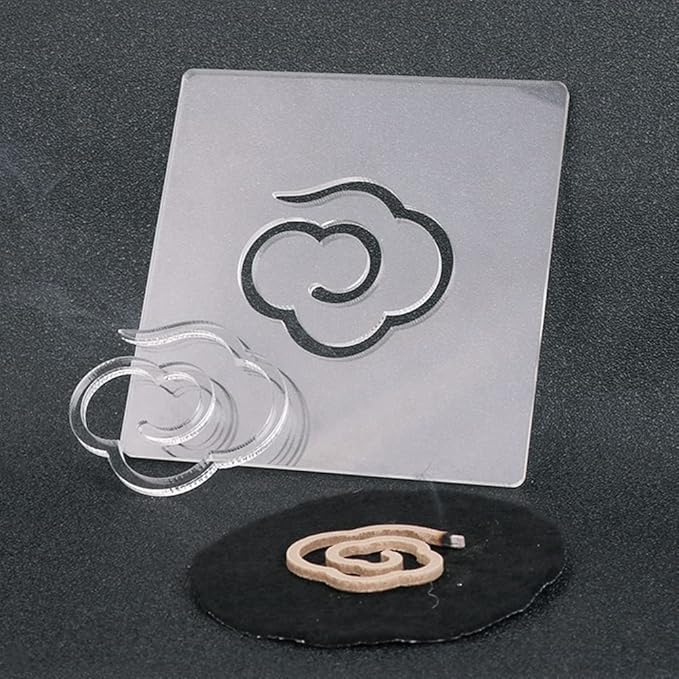 ●使い方: ①香型の保護フィルムをはがすと、透明な香型が見えます。 ②準備した香り泥を型の線に押し込み、香土の作り方は線香を参照します。 ③底板を上にして、香り泥が気泡なく完全に固まるまで押します。 ④スクレーパーを使って余分な香り泥をこすり落とします。 ⑤底板を外し、型を平干しネットの上に置き、突き出し用型で型からお香を押し出します。 ⑥数日陰干しした後、お香を焚けてご使用ください。