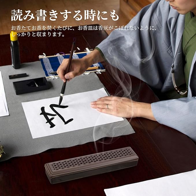 【適応場所】横置きタイプのねかせる線香皿で、仏壇用香炉としての使用はもちろん、リビングや玄関などのインテリアにもぴったりのせんこうたてです。ご家族の仏壇だけでなく、瞑想やヨガ、ティールーム、ピアノルーム、書斎などでもご使用いただけます。和室にも洋室にも調和するモダンなインセンスホルダーです。香を焚くことによって、香りが部屋全体を浄化し、供養する者の心身も浄化されると言われています。