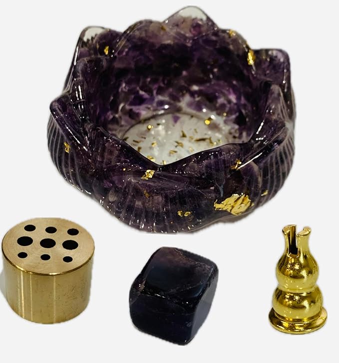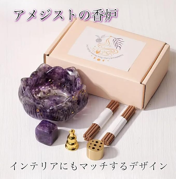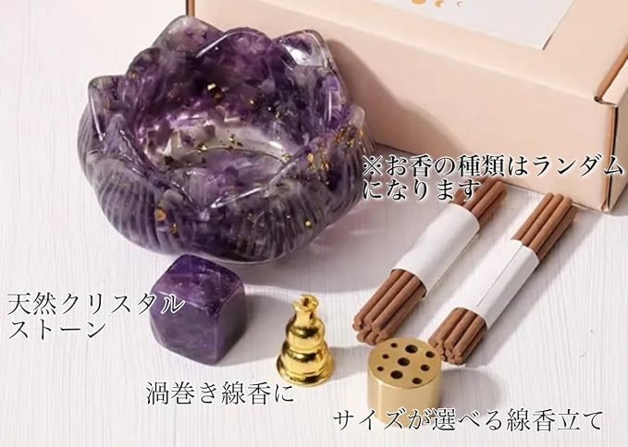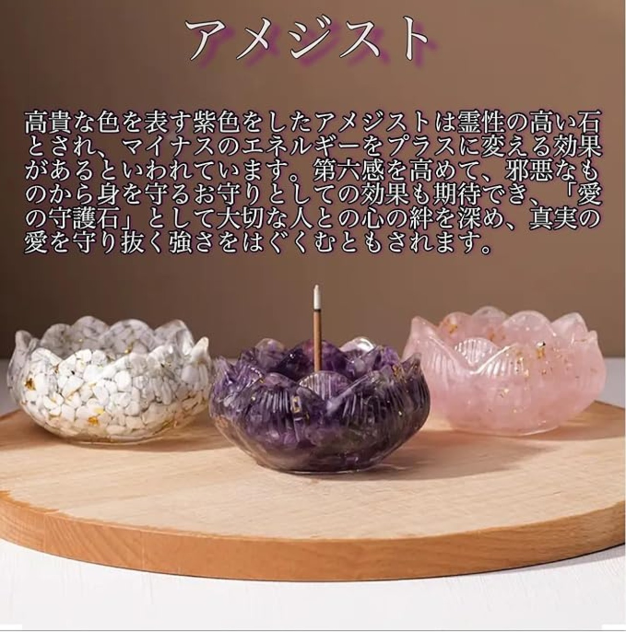 天然パワーストーン アメジスト お香立て 4点セット お香付き お部屋の浄化に 香炉 線香 浄化 皿 開運 風水 厄除け 邪気払い プレゼント 贈り物 ギフト ※お香の種類はランダムです | KAZESHOP