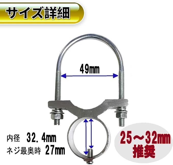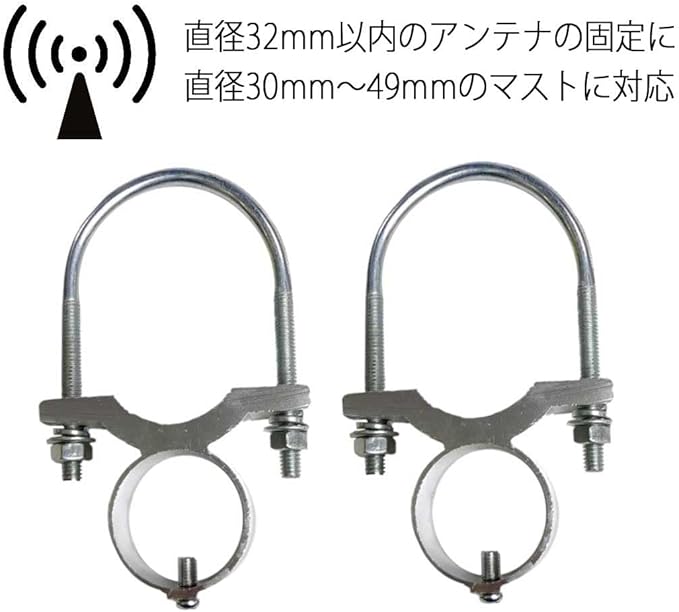 【幅広い用途と取り付けの安定性】U字型が特徴で、船舶や無線アンテナの取り付け、ベランダや屋根でのパイプ固定、マスト取付けなど、幅広い用途に使用可能です。2個セットで、安定した取り付けが行えます。直径32mm以下のパイプや支柱に対応しており、DIYやプロの作業にも最適です。また、調整可能な構造で、丸パイプやマストの固定位置を微調整できるため、精度の高い取り付けが可能です。DIY作業の幅が広がり、さまざまな設置作業に応用できます。