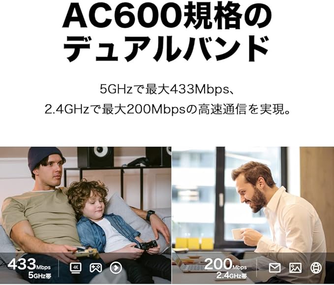 [Wi-Fi規格] AC600規格 5GHz: 433Mbps , 2.4GHz: 200Mbps