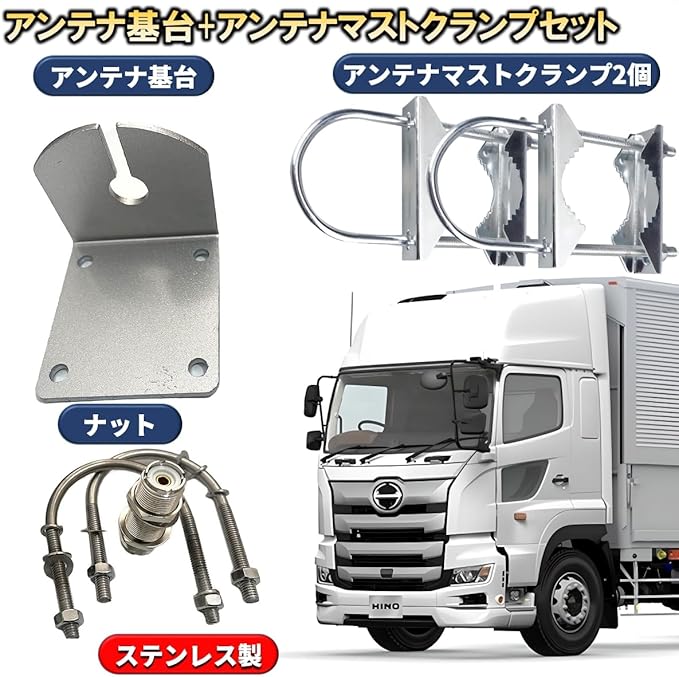 使い方簡単、トラック用の無線、アマチュア無線機のモービルアンテナ、センサーの設置個所にあわせて基台とパーツを固定するだけ。サビ、雨など耐久性に優れた素材を使用。屋外、車体などの利用にも適しています。